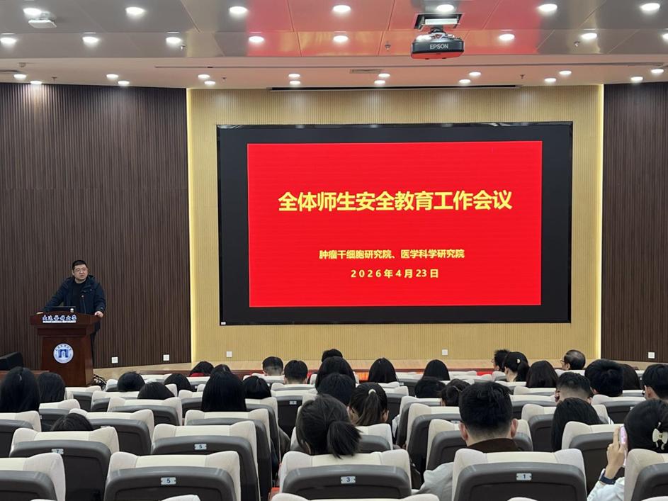 为强化师生安全意识,切实筑牢校园安全防线,4月23日,肿瘤干细胞研究院、医学科学研究院在基础医学院学术报告厅召开安全教育大会,全体师生参加会议。会议由党总支书记韩静主持。
